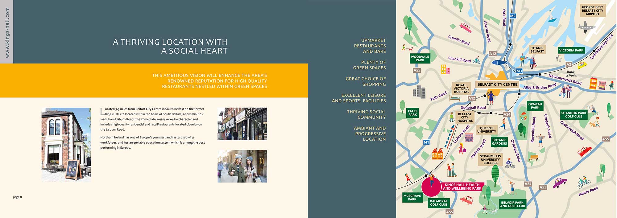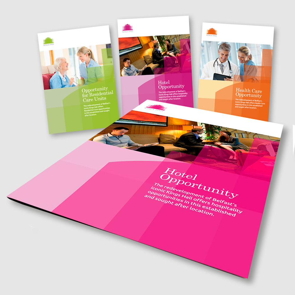 Brand Identity: Property DevelopmentBackground: The King’s Hall Complex is a new 16-acre development situated at Belfast’s iconic King’s Hall building in Balmoral, encompassing a range of commercial and residential facilities including healthcare clinics, a hotel and a private hospital. The complex required a visual brand that would portray the scheme as an exciting, modern and innovative project, building on the existing King’s Hall heritage, ethos and culture.